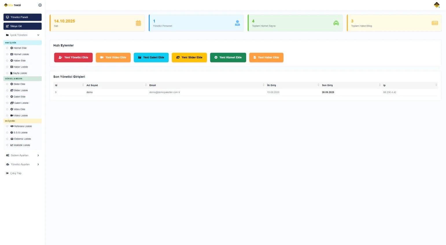Taksi V1 Yönetim paneli de dahil olmak üzere tamamen mobil uyumlu kullanıcı dostu ve arama motoru dostu bir yapıya sahiptir.